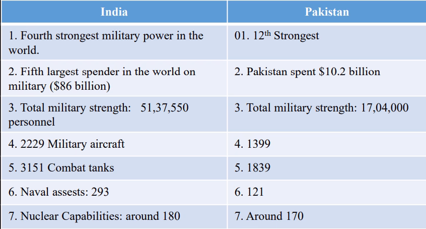 - Comparing the India and Pakistan’s military and nuclear capabilities