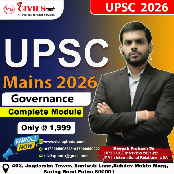 Prepare comprehensively for GS Paper 2 (Governance) with Civils Phodo’s Governance Complete Module, designed exclusively for UPSC Mains aspirants. This course helps you master every dimension of governance — from transparency and accountability to e-governance and citizen-centric administration — with deep conceptual clarity and real-world examples.